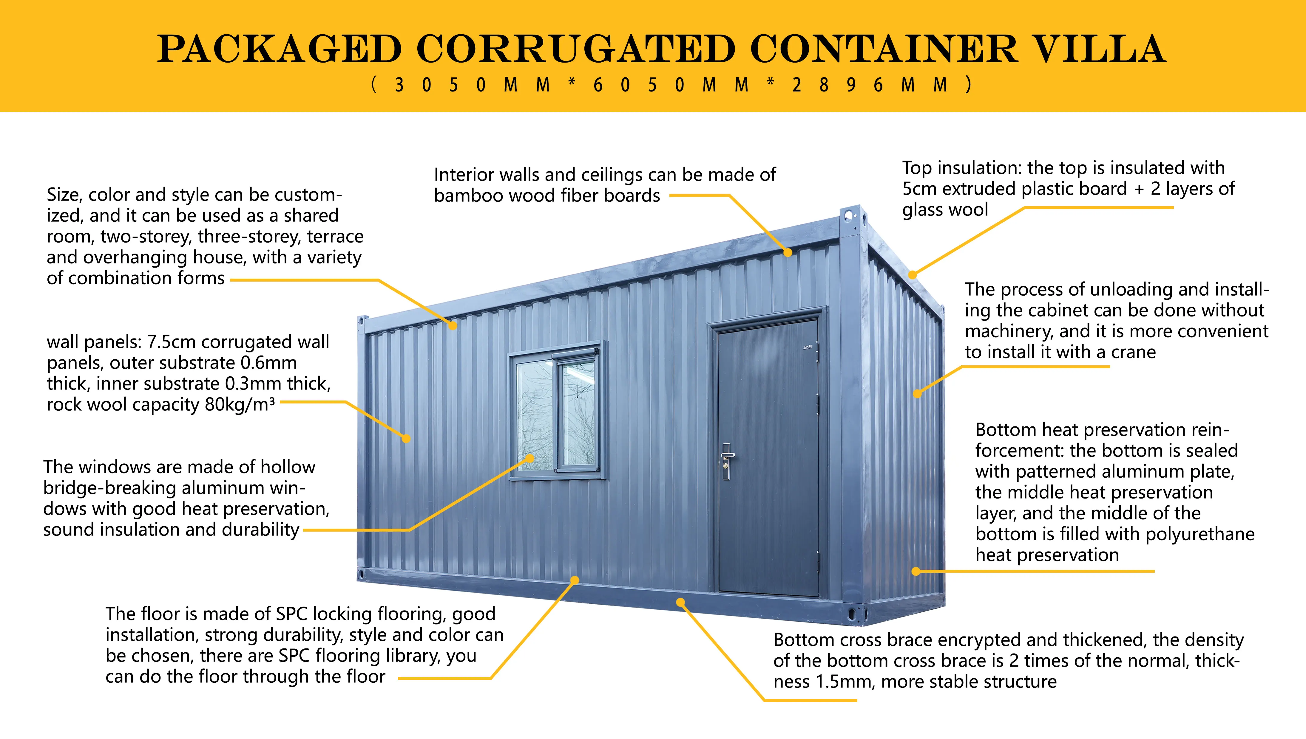 Overall, the assembled container villa is a new form of residence with unique charm and advantages. It can not only satisfy people’s pursuit of a better life, but also help protect the environment and sustainable development.
